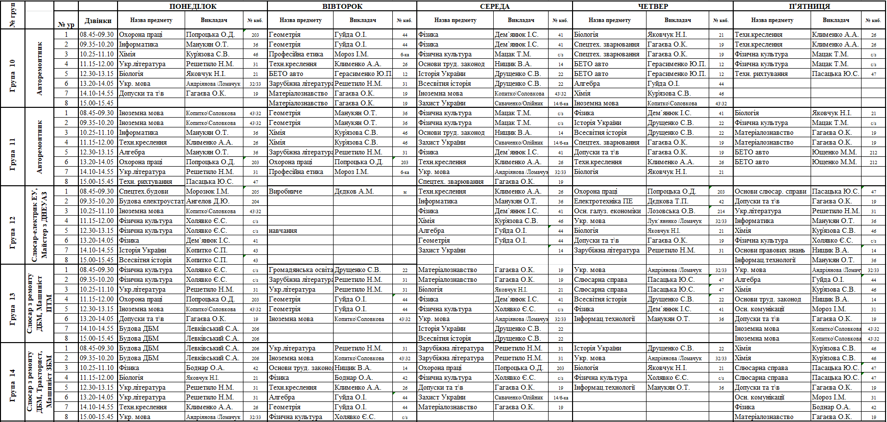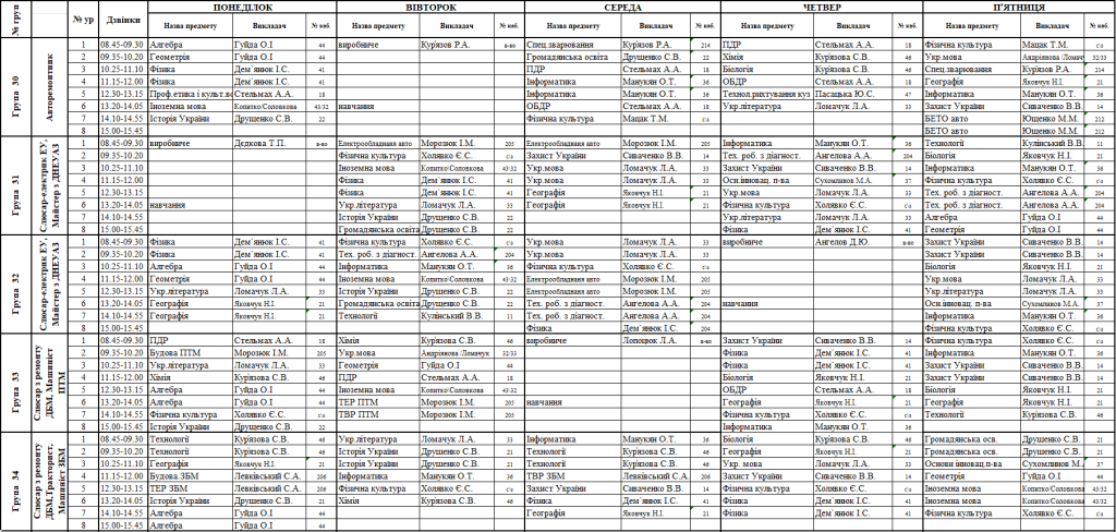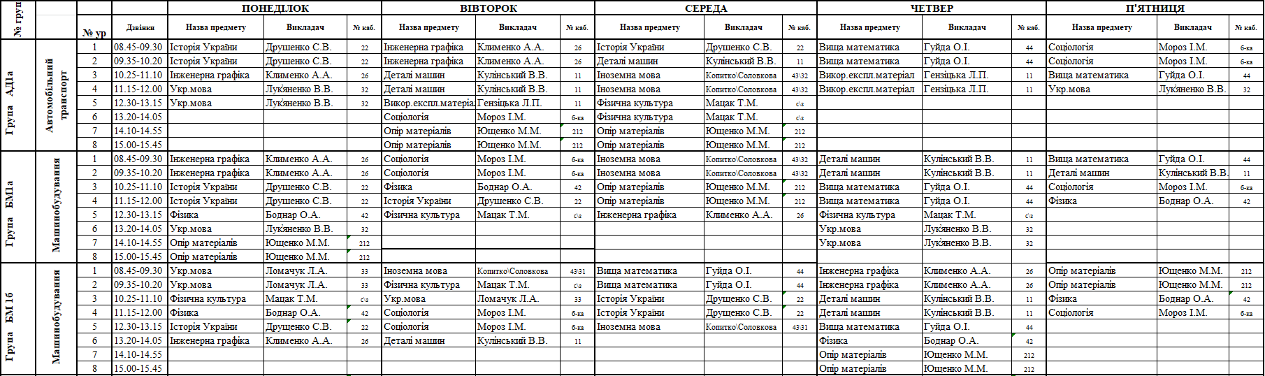 Зимова сесія «фаховий молодший бакалавр» І курс, ІІ курс