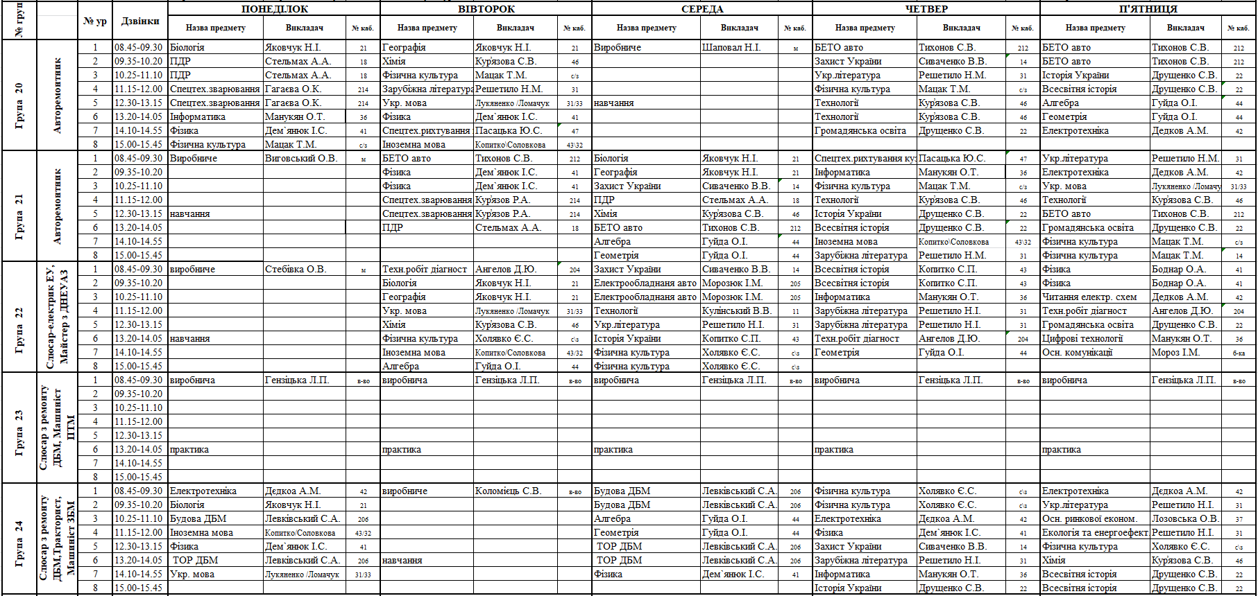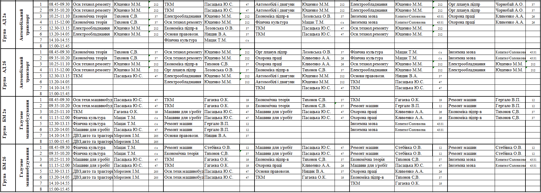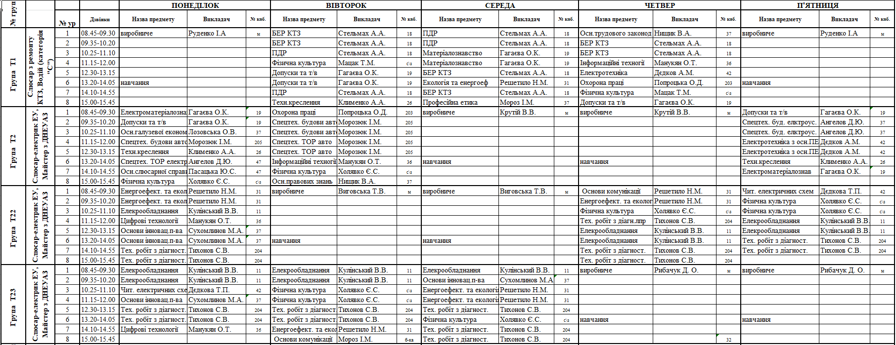 Зимова сесія «фаховий молодший бакалавр» І курс, ІІ курс