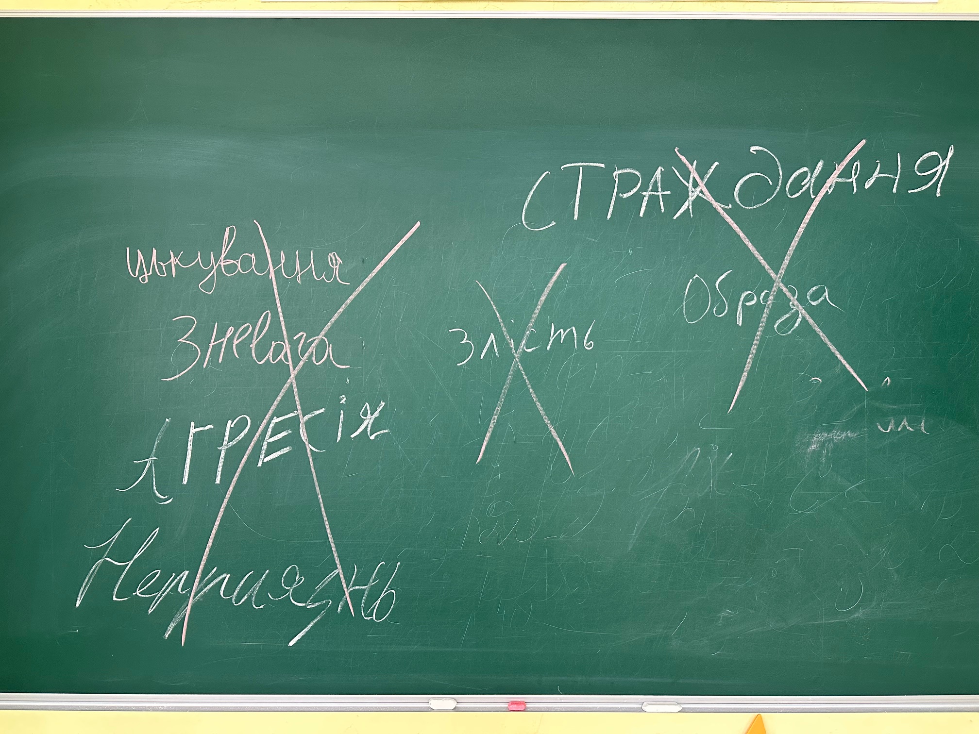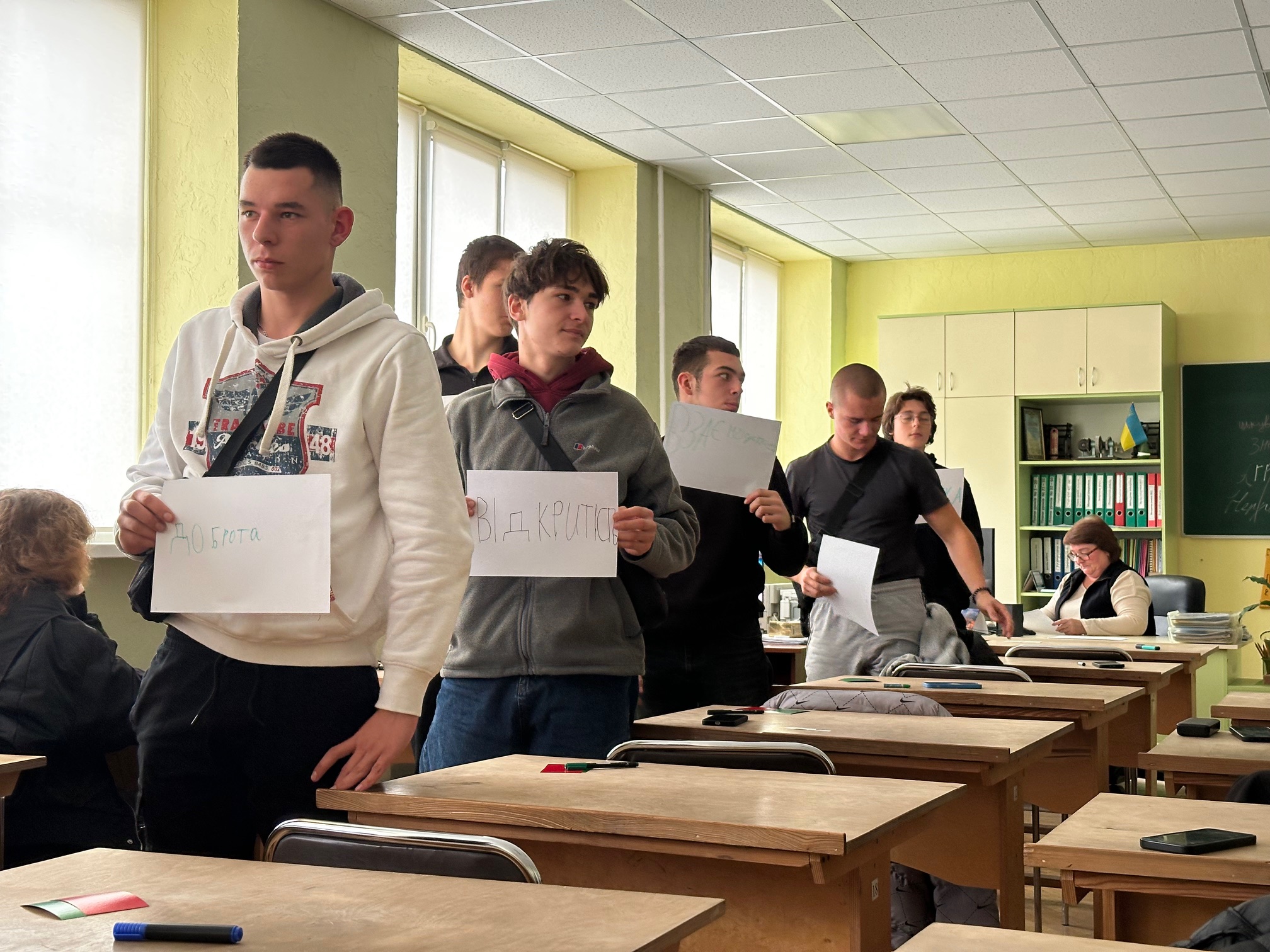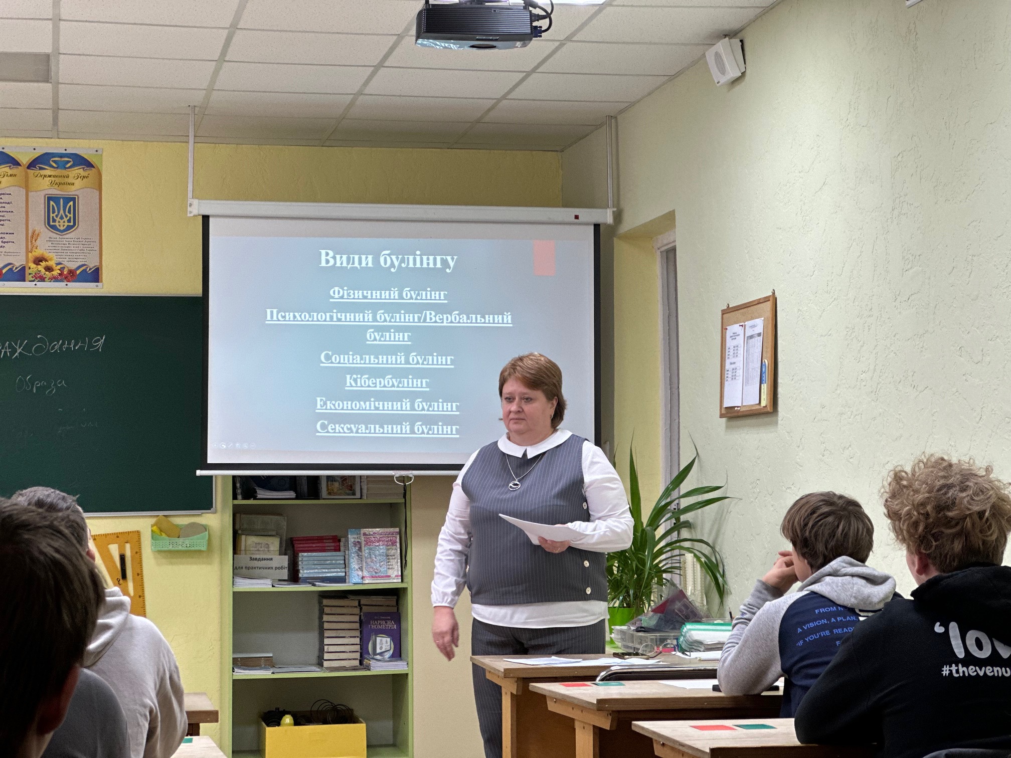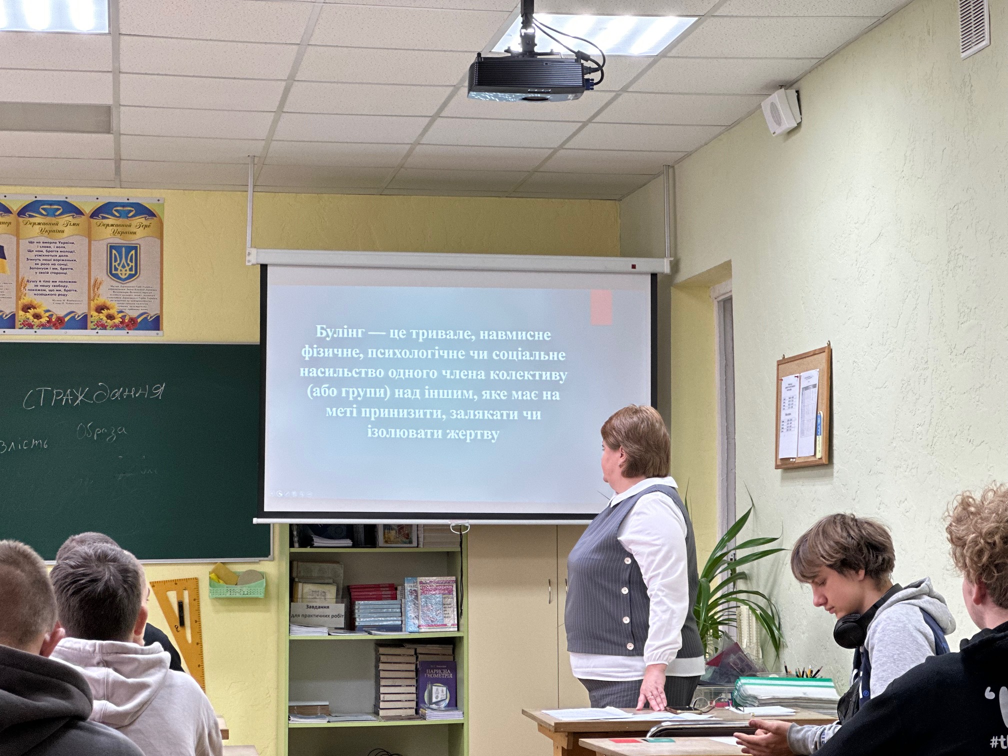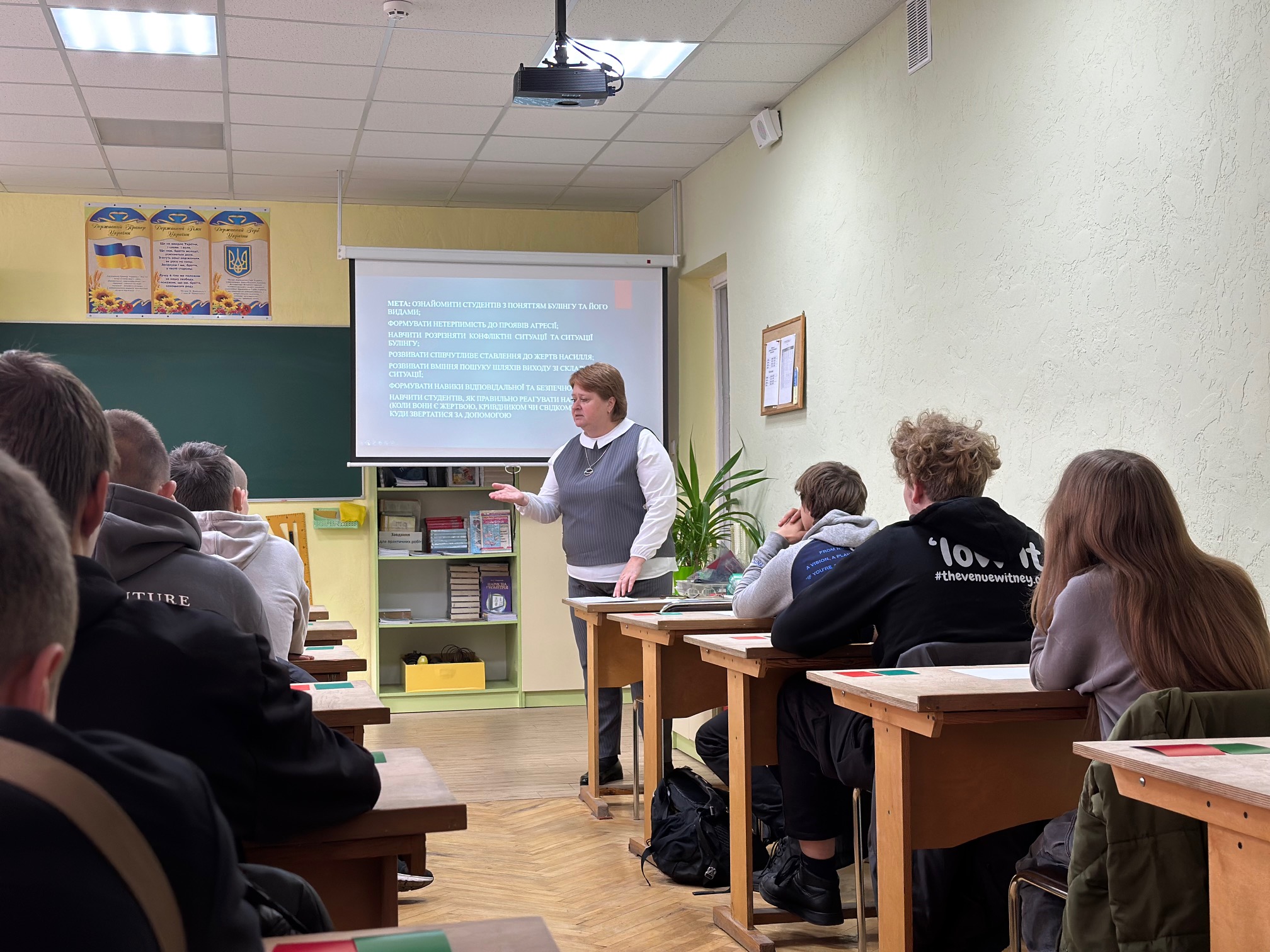 Цей урок став справжньою подорожжю у світ емоцій і взаємоповаги. На початку студенти сміливо писали на дошці слова, що відображають булінг: «зневага», «страждання», «страх», «осуд», «цькування», «насмішка», «самотність»… Кожне слово нагадувало, наскільки боляче можуть ранити слова та поведінка, і як легко можна когось образити, навіть не задумуючись.