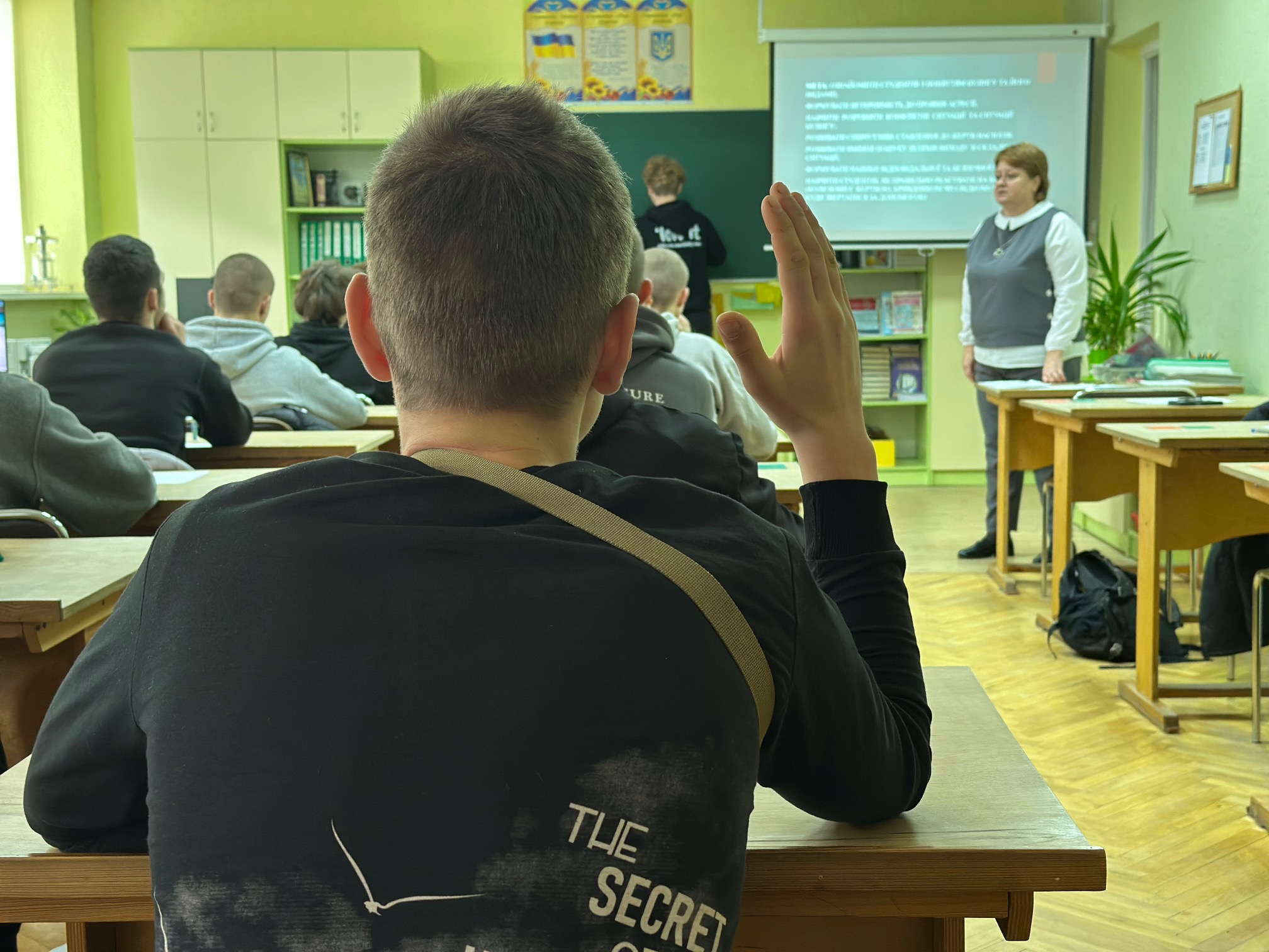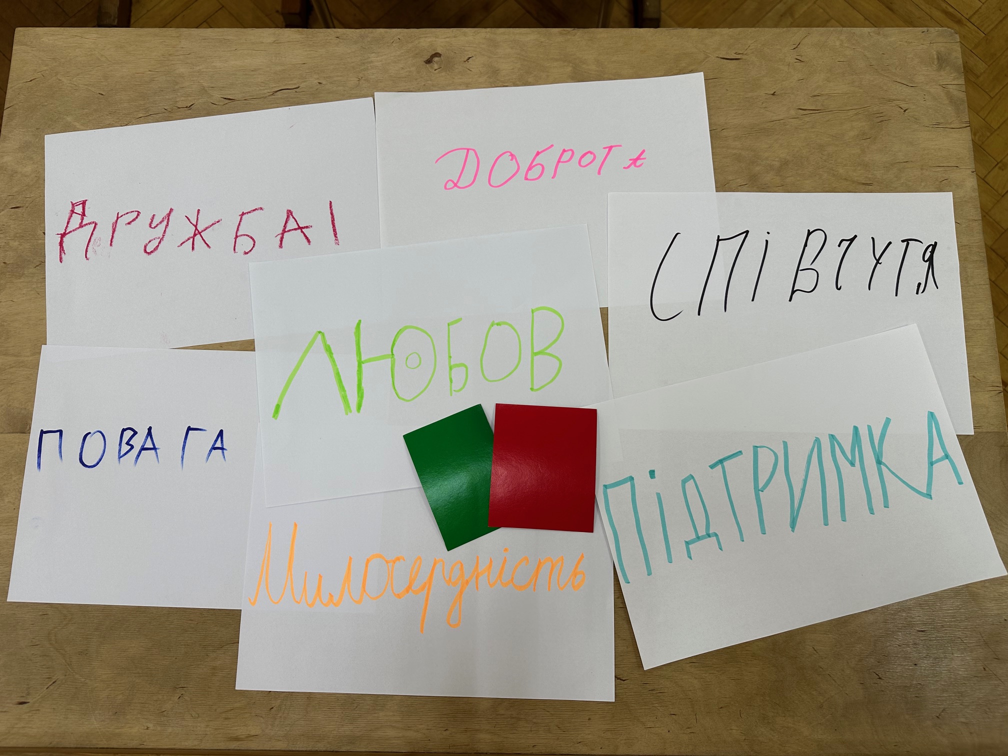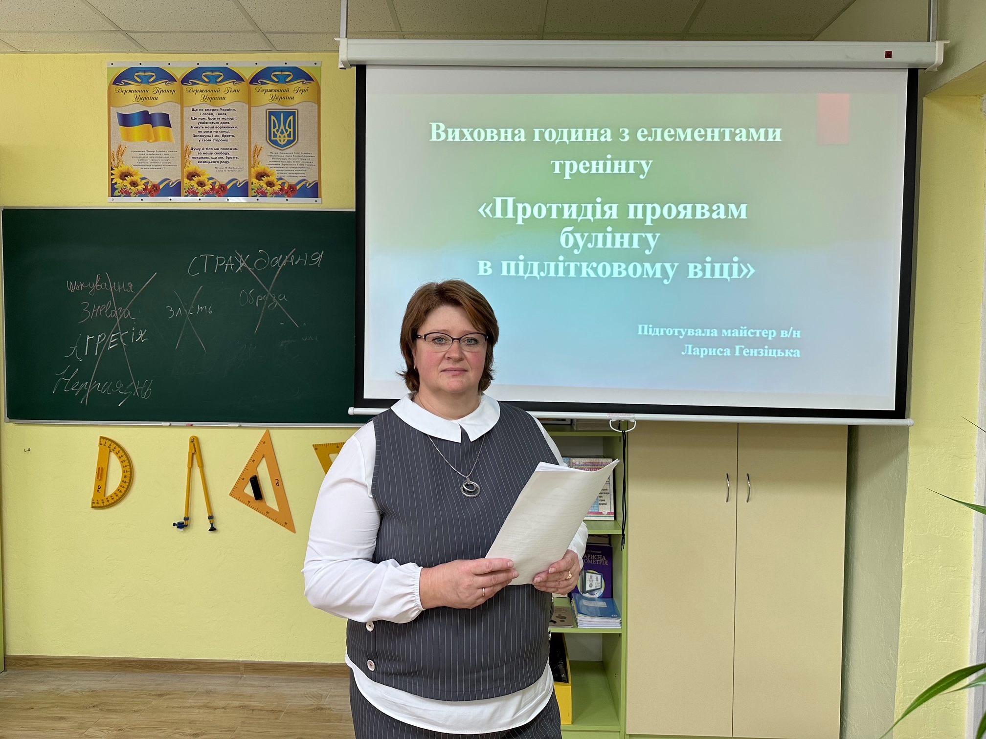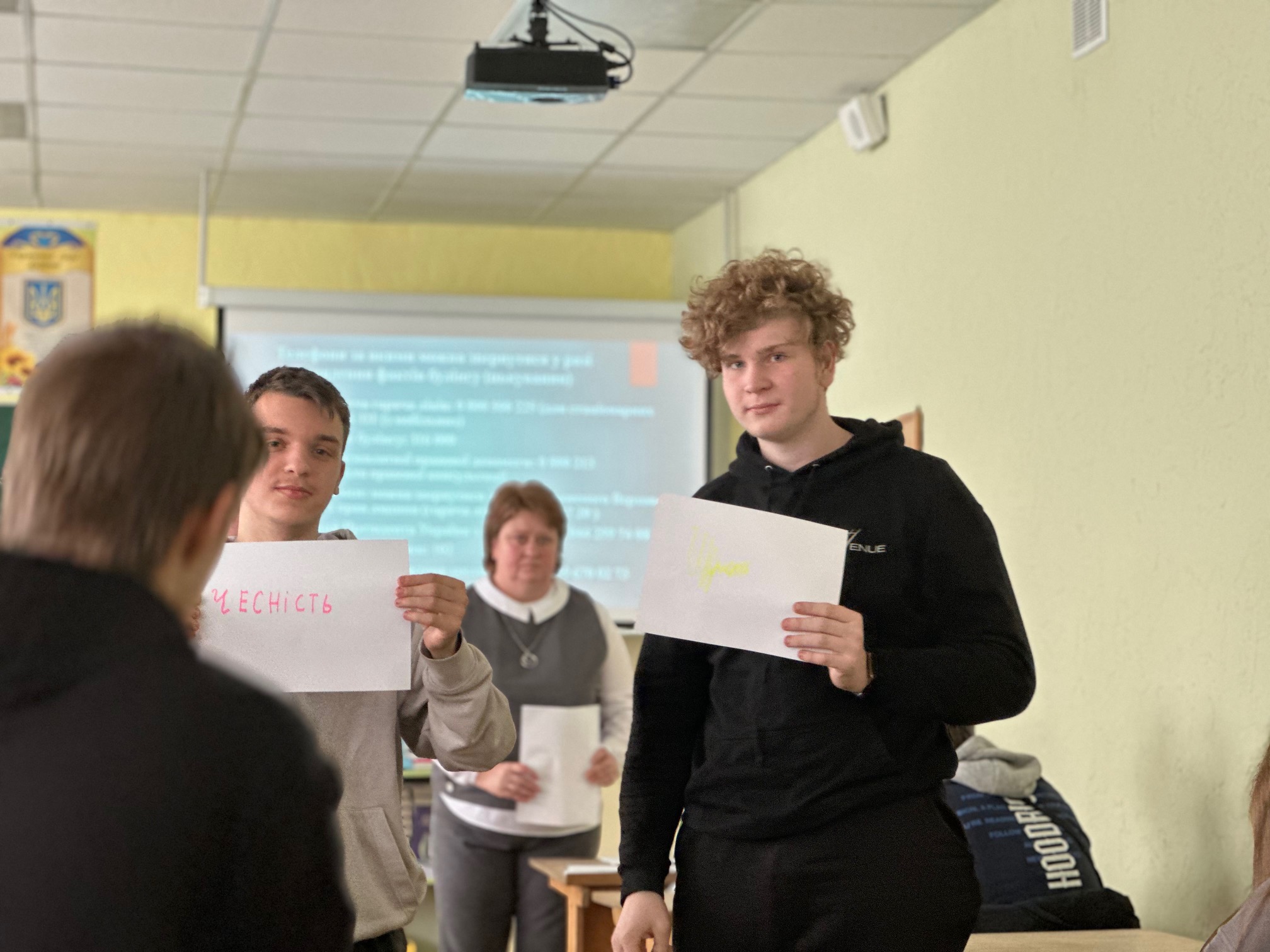 На завершення уроку вони закреслили ці слова та замінили їх на «повага», «дружба», «підтримка», «розуміння», «доброта». Кожне нове слово – це маленький крок до світу без булінгу, до атмосфери, де кожен відчуває себе почутим і захищеним.