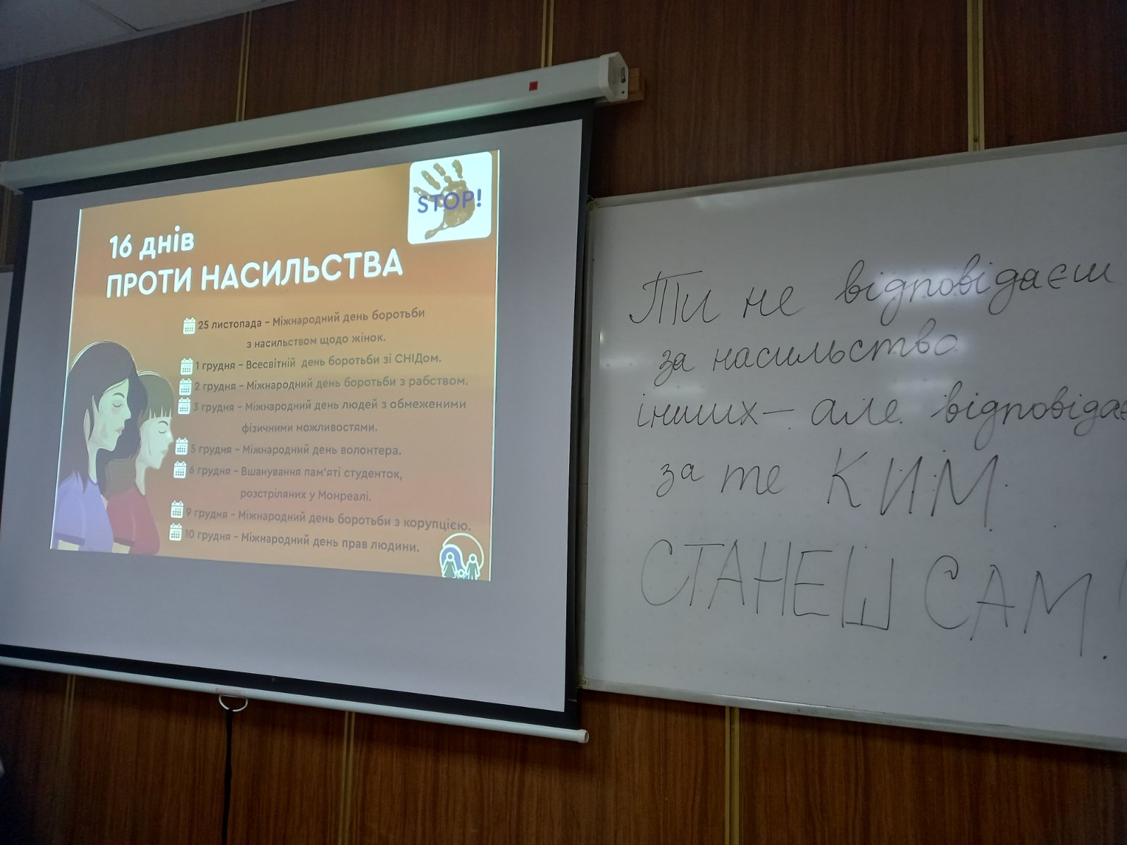 У межах Всеукраїнської акції «16 днів проти насильства» у закладі освіти відбулася серія просвітницьких занять для студентів, які провела практична психологиня — Вікторія Манукян.